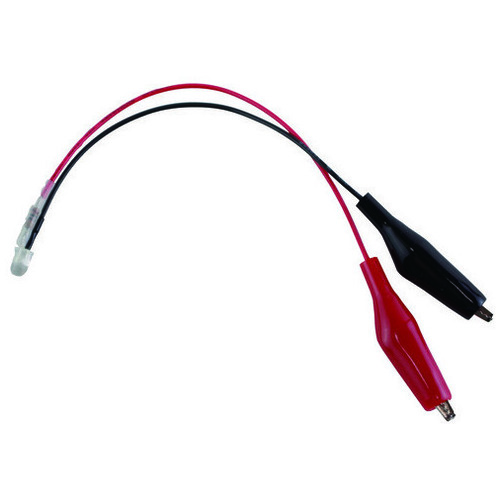 手回し発電機に直接つなげても破損しにくい抵抗入り。手回し発電機と合わせて使用します。