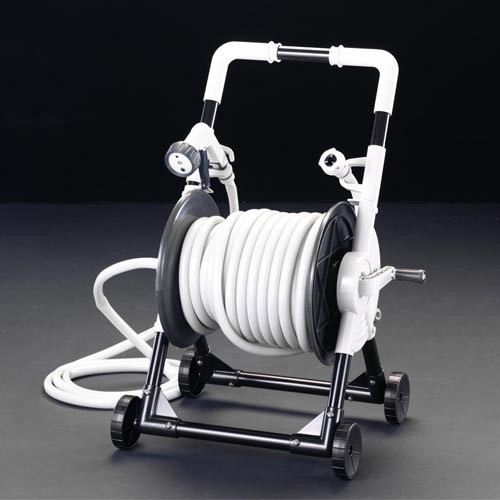 持ち運びに便利なキャスター付きのホースリールです