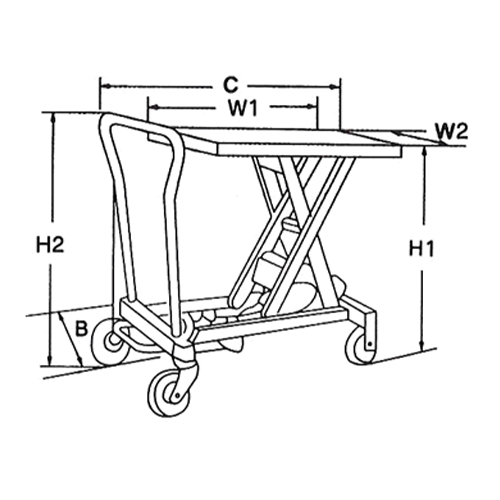 ●メーカー…ナンシン●型番…BS15●耐荷重…150kg●ハンドル高…1000mm●車輪径…100mmゴム車●重量…41kg●サイズ(mm)…B:450、C:950、H1:255~760、W1:700、W2:450●踏込数…25回●車輪…前輪:固定、後輪:自在(ストッパー付き)●重量物の積み込み・積み降ろしに最適●ハンドル折りたたみ式●油圧式●ハンドルの後に付いているレバーはテーブルを降下させるのに使用します。自転車のブレーキのようにレバーを握り、握っている間だけ、テーブルが緩やかに降下します。●オイル補充方法(ご使用していますとオイルが染み出てきます)1.テーブルを最高位に上げて、機械式のロックを行ってください。(機械式のロック方法はセーフティピン(1本)を1度抜いて、180°反転させて穴に戻してください。)2.オイル注入口からオイルを補充して下さい。3.機械式のロックを外してテーブルを最低位にしてください。(この時、オイルタンクの吸気口からオイルが出る事があります。許容量以上のオイルが 補充された為に調整で出たものです、トラブルではありません。)4.機能確認としてテーブルを最高位、最低位に往復させます。 操作性に問題ない事を確認したら、オイルの補充は終了です。●参考在庫数・商品詳細・サイズ情報はメーカー(参考)URLからもご確認いただけます。 ●最小出荷単位: 1