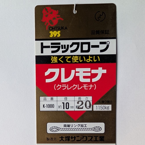 ●材質…クレモナS(ビニロン+ポリエステル)●構造…三つ打ち●引張強度…11.2kN●サイズ(呼径×長さ)…φ10mm×20m●比重…1.30(水に沈みます。)●特徴…触感が綿糸に似ていて扱いやすいが水に濡れて乾燥を繰り返すと固くなります。●耐熱性…120~320℃●両端アイ加工●参考在庫数・商品詳細・サイズ情報はメーカー(参考)URLからもご確認いただけます。 ●最小出荷単位: 1