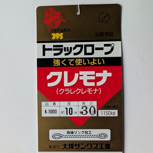 ●材質…クレモナS(ビニロン+ポリエステル)●構造…三つ打ち●引張強度…11.2kN●サイズ(呼径×長さ)…φ10mm×30m●比重…1.30(水に沈みます。)●特徴…触感が綿糸に似ていて扱いやすいが水に濡れて乾燥を繰り返すと固くなります。●耐熱性…120~320℃●両端アイ加工●参考在庫数・商品詳細・サイズ情報はメーカー(参考)URLからもご確認いただけます。 ●最小出荷単位: 1