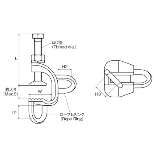 ●クランプサイズ…15mm●ねじ径…M8●重量…135g●材質… 本体:特殊ステンレス、 ねじ:ステンレス(SUS304)●使用荷重… 縦:100kg、横:20kg●締付トルク…10N・m●H鋼などに取り付け、防鳥ネットや 落下防止ネットなどの ワイヤー固定用に使用します。●ロープ用リングを正面、下面の2ヶ所に 配置することで使用用途が広がります。●参考在庫数・商品詳細・サイズ情報はメーカー(参考)URLからもご確認いただけます。 ●最小出荷単位: 1