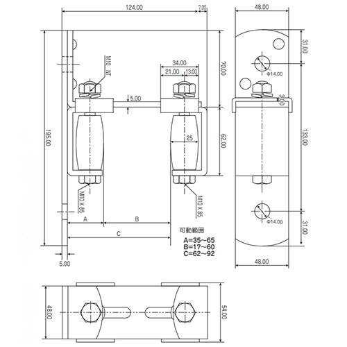 EA986RC-3 17~60mmガイドロ-ラ-(門扉用/2個