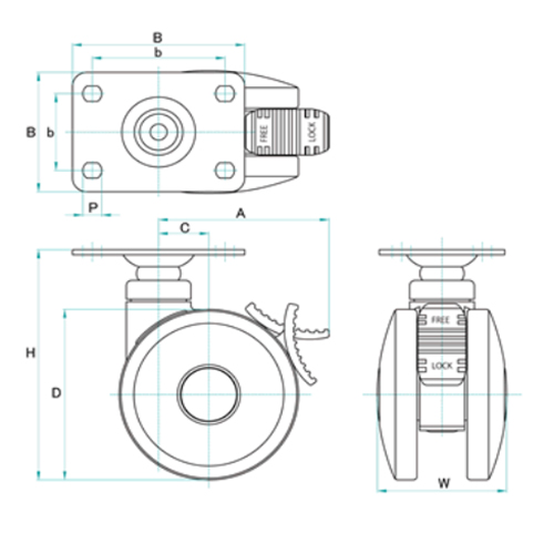 ●メーカー…東信製作所(トーシン)●型番…TSW100-P●自在キャスター●プレートタイプ●ブレーキ付●材質…本体:ナイロン、車輪:ウレタンエラストマー●旋回部と車輪を同時に止めるダブルストッパー機構●耐荷重…120kg●取付高(H)…132mm●車輪径(D)…100mm●車輪幅(W)…72mm●プレートサイズ(B)…96×70mm●取付サイズ(b)…74×45mm●取付穴(P)…9mm●旋回半径(A)…95mm●偏芯(C)…28mm●重量…765g●参考在庫数・商品詳細・サイズ情報はメーカー(参考)URLからもご確認いただけます。 ●最小出荷単位: 1