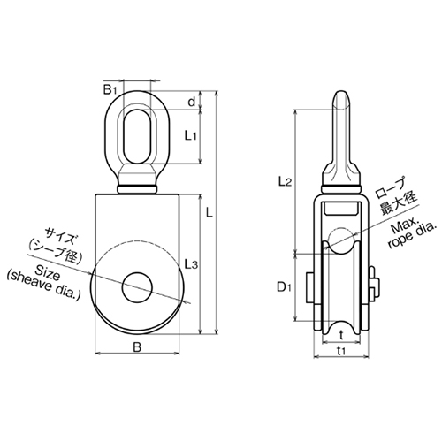 ●材質…本体:SUS304、車:SUS304●車径…75mm●使用荷重…550kg●使用ロープ径…~16mm●全長…177mm●重量…970g●スイベル式(360°回転)●参考在庫数・商品詳細・サイズ情報はメーカー(参考)URLからもご確認いただけます。 ●最小出荷単位: 1