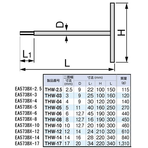 EA573BX-6 6.0x300mmHexagonT型レンチ