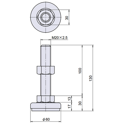 ●材質…底部ベース:クロロプレンゴム、底部金具:ステンレス鋼板(SUS304)、ねじ:ステンレス鋼棒(SUS304)●耐荷重…700kg●ベース径…60mm●全長…130mm●ねじサイズ…M20×2.5●重量…466g●パシペート処理●あらゆる機器を設置した後でも、高さが自由に調整できる便利な筐体ラックの足です。特に重量用に適しています。●滑止用のゴムが付いています。●ステンレス製ですので、耐蝕性に優れています。座とボルトの間にナイロンワッシャを使用していますので回転がスムーズです。●参考在庫数・商品詳細・サイズ情報はメーカー(参考)URLからもご確認いただけます。 ●最小出荷単位: 1