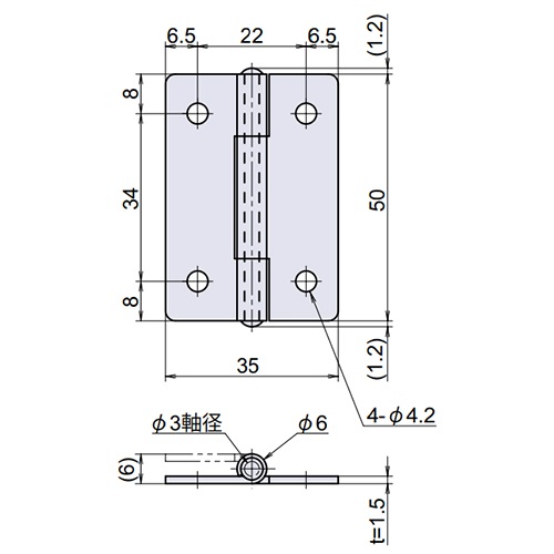 ●材質…ステンレス(SUS304)●ヘアーライン仕上げ●耐蝕・耐熱性に優れた厚口蝶番です。●穴数…4●穴径…4.3mm●幅…35mm●全長…50mm●厚み…1.5mm●入数…2個●取付ねじ無し●参考在庫数・商品詳細・サイズ情報はメーカー(参考)URLからもご確認いただけます。 ●最小出荷単位: 1