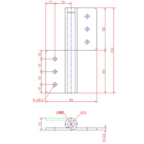 ●材質…ステンレス(SUS304)●仕上げ…バフ研磨●サイズ…全長:100mm、幅:60mm、厚み:2.5mm、穴径:4.2mm●穴数…6●右勝手用●取付ねじ無し●参考在庫数・商品詳細・サイズ情報はメーカー(参考)URLからもご確認いただけます。 ●最小出荷単位: 1