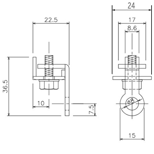 24x22.5x36.5mm中間ストップ(30mmレール)