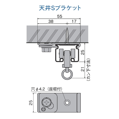 ●メーカー…岡田装飾金物●型番…12T51●サイズ…55×25×11(H)mm●取付穴径…φ4.2mm●材質…スチール●仕上げ…ユニクロメッキ●重量…33g●天井取付用●30mmレール用●参考在庫数・商品詳細・サイズ情報はメーカー(参考)URLからもご確認いただけます。 ●最小出荷単位: 1